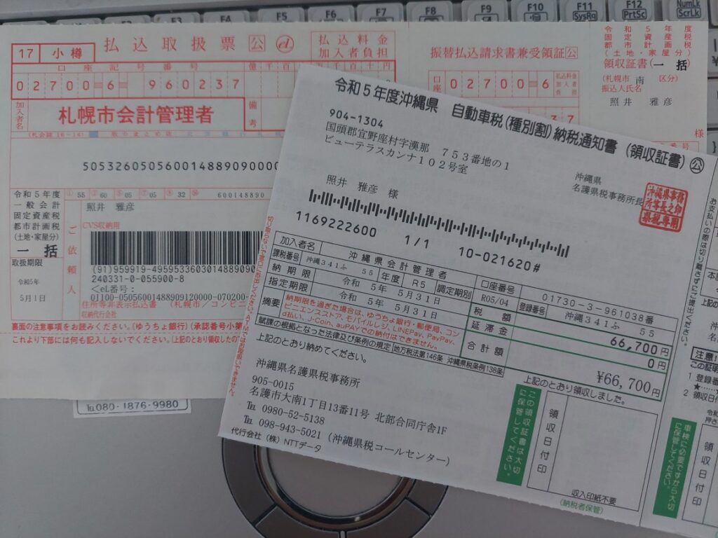 PS.遂に、来ちゃいました一年で一番いやなモノ?クルマの自動車税、年式の古い車で、排気量も大き目?なので高い66700円を今月いっぱいまで、プラス4月にクルマを買ったので、クルマの保険も払わなくて・・・後、札幌のマンションの固定資産税来ていて、年金生活者で仕事も掛け持ちでしてるのに、支払いが次々来ます・・・んーーー大変だ! コンビニ支払いの後、新製品スイートを発見、スイートポテトの加工品より、いつもの紅天使の方が安くて美味い?数日前の買い物では、残念ながら、売り切れだったので、今度見つけてた買い占めよう!