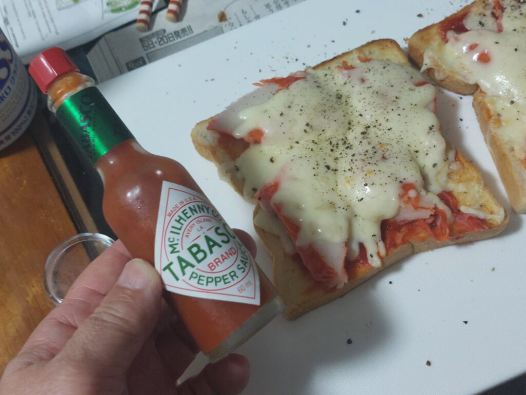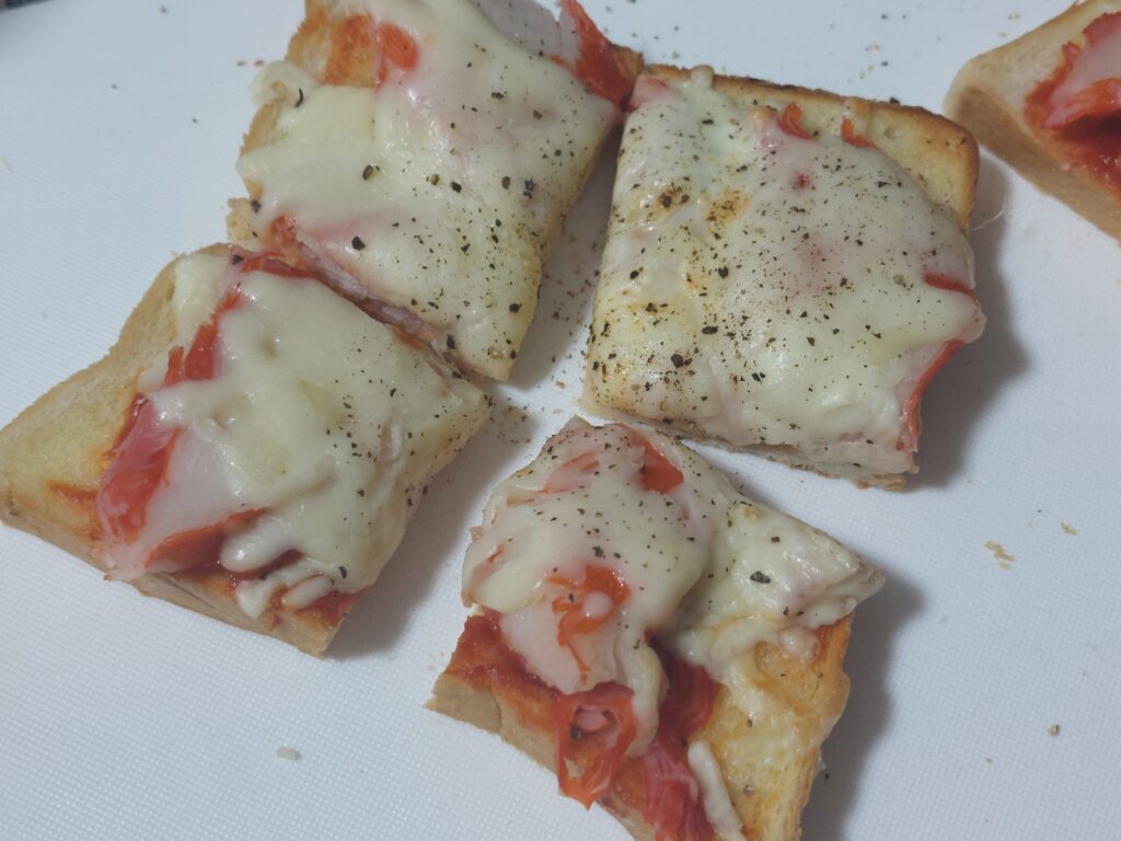 小腹が空いたので、ピザトーストを作りました。