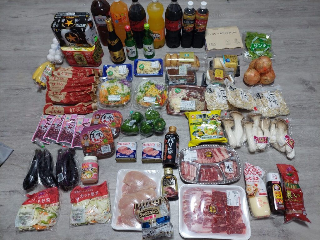 頂いた、高級な、お肉1キロがメインディッシュです、4人だと250グラムぐらい?。今日の朝仕事帰りに金武のマックスバリューに寄って、ビール、お酒やソフトドリンク飲料水、玉ねぎ、なすび、もやし、エリンギなどの野菜、キムチ、出来上がりのサラダ、お気に入りサツマイモ「紅天使」やケーキ色々、足りない時様にように普通に焼肉セットのお肉を各種色々とガッツリ買いました!大きな冷蔵庫もパンパンです。買い物も、いつもは一週間分は結構な量エコバック2個ぐらいで足りるのですが・・・流石に今回はコストコの巨大なバックも活用して大きなエコバック4に袋にガッツリ買いました流石にちょっと多すぎかな?