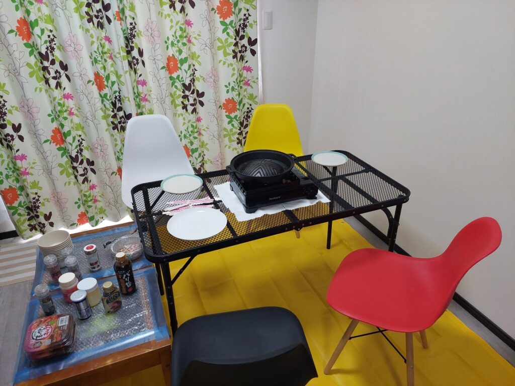 後は、北海道なんでジンギスカン鍋でお肉だけ焼いて食べてもらって・・・焼き上がりに時間がかかる野菜類は先に切って、自分がフライパンで別でどんどん焼いて片っ端から友達に提供する予定です!後はテルリンの北海道の赤飯もどき風?赤飯と「ゆめぴりか」直前に炊いて食べてもらいます。初めベランダでと思いましたが・・・今日は天気が雨みたいなので、普段はパタールームにシートを引いて、折り畳み式、机にカセットコンロを載せて完成?でも、ちょっとせまい?かな?いつも、用意して食べるのは楽しいんだけど、後片付けが大変ですが・・・いつも、焼肉を食べてから、アルコール無しで今日はクルマの運転もないし明日の夜まで時間があるのでゆっくり片付けよう!今日は楽しく飲むぞーーー!