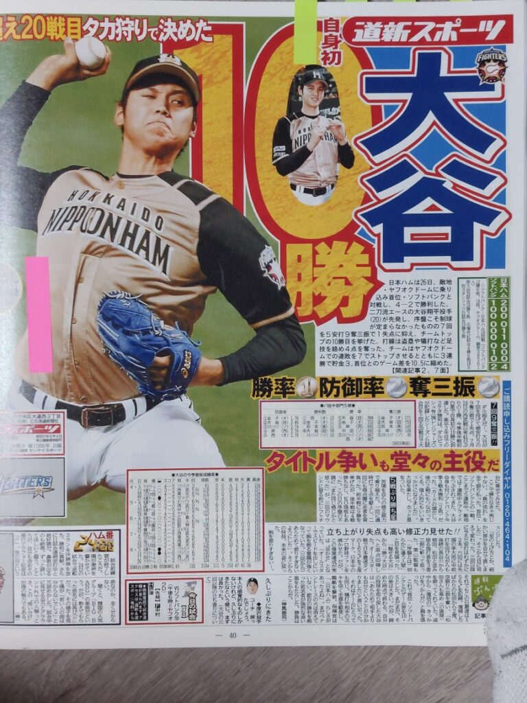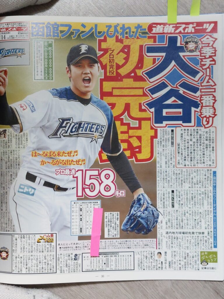 下の写真は新聞の一面を飾った、当時の自分が撮影した写真の一部です。大谷くんも日ハム経由でメジャーで良かったと思います!メジャーに行って調子が悪くなると向こうのマスコミに二刀流なんか?と叩かれた時期や、ケガでと色々ありましたが・・・結果をだした今はファン投票でぶっちぎりの1位です!チームがもう少し強ければ、もう10勝ぐらいしてるでしょう!