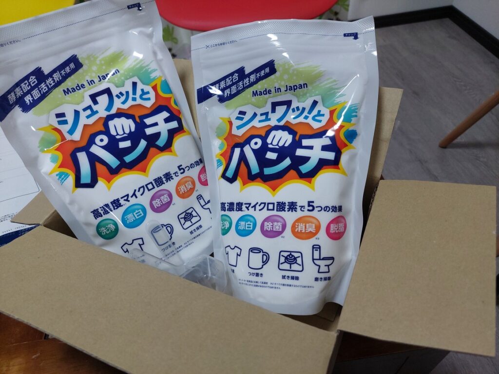 昨日の夕方にピンポン?小包が届きました「あれー?また何かポチっとしたかな?」小さい小包ですが、ずっしり思い・・・開けてみると「あーーーこれね一カ月前ぐらいに、テレビでやってた、万能洗剤のシュワッ!とパンチ」。