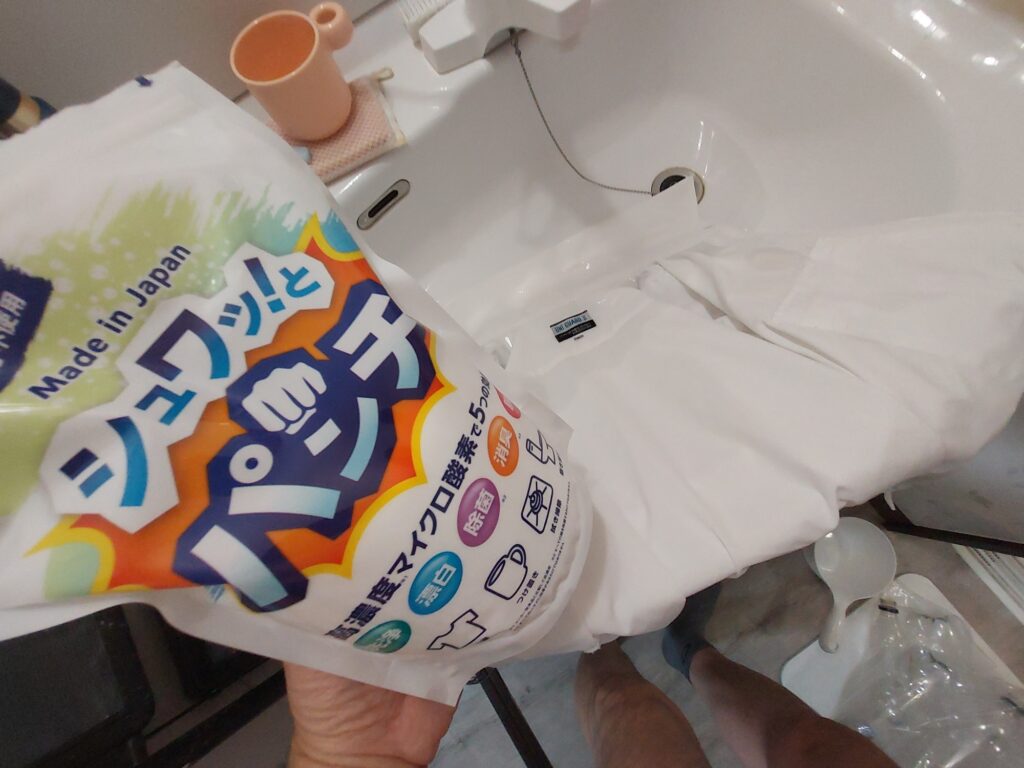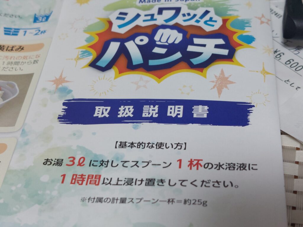 取り合えず2キロ買って、スプーン一杯でどれくらい使えるか???取り扱い説明書をみると、ダメじゃんテレビは過大広告じゃん!テレビでは水なのに、取扱説明書には30℃~50℃って、かなり高温だし・・・「1時間以上付け置きしてください・・・」ってテレビではあっという間に汚れが落ちてるのに・・・。と・・・テレビを観てるとまた、偶然「万能洗剤のシュワッ!とパンチ」宣伝やってました、この、テレビの「シュワッ!とパンチ」は特別仕様なのかな???