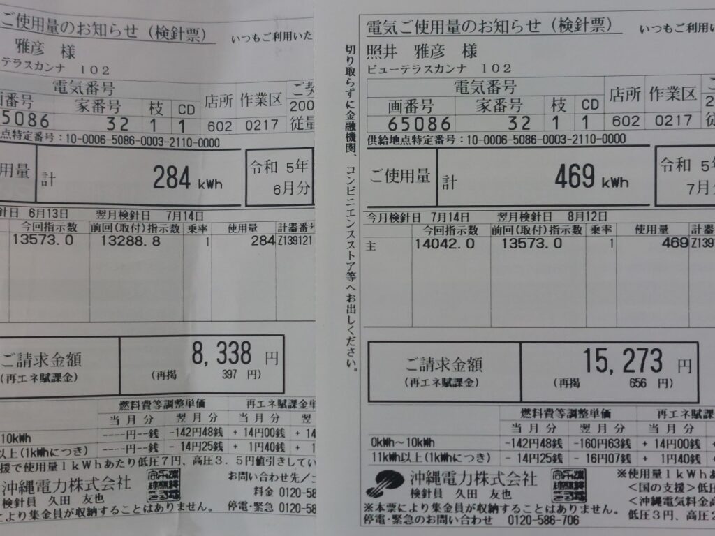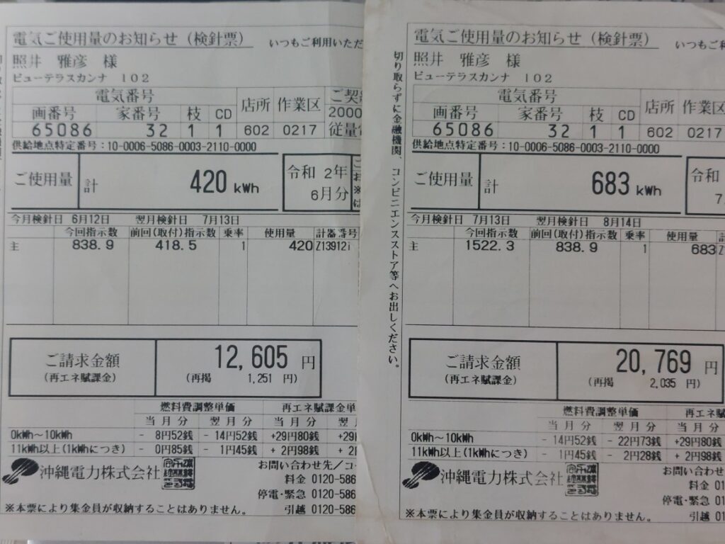 その他は、できるだけ小まめに電気を切ってます最近6月の電気代一人暮らしなのに高いなと思って支払った6月分が8338円。その途端?7月分の払い込み用紙が届きました15273円電気代の値上がりなのか?使用量なのか?2022年確定申告で整理してたのを探してみると22年の6月分12605円で7月分20769円と去年は節電なんかせずにガンガンエアコンを使ってたんで実際は去年の方が使ってました。