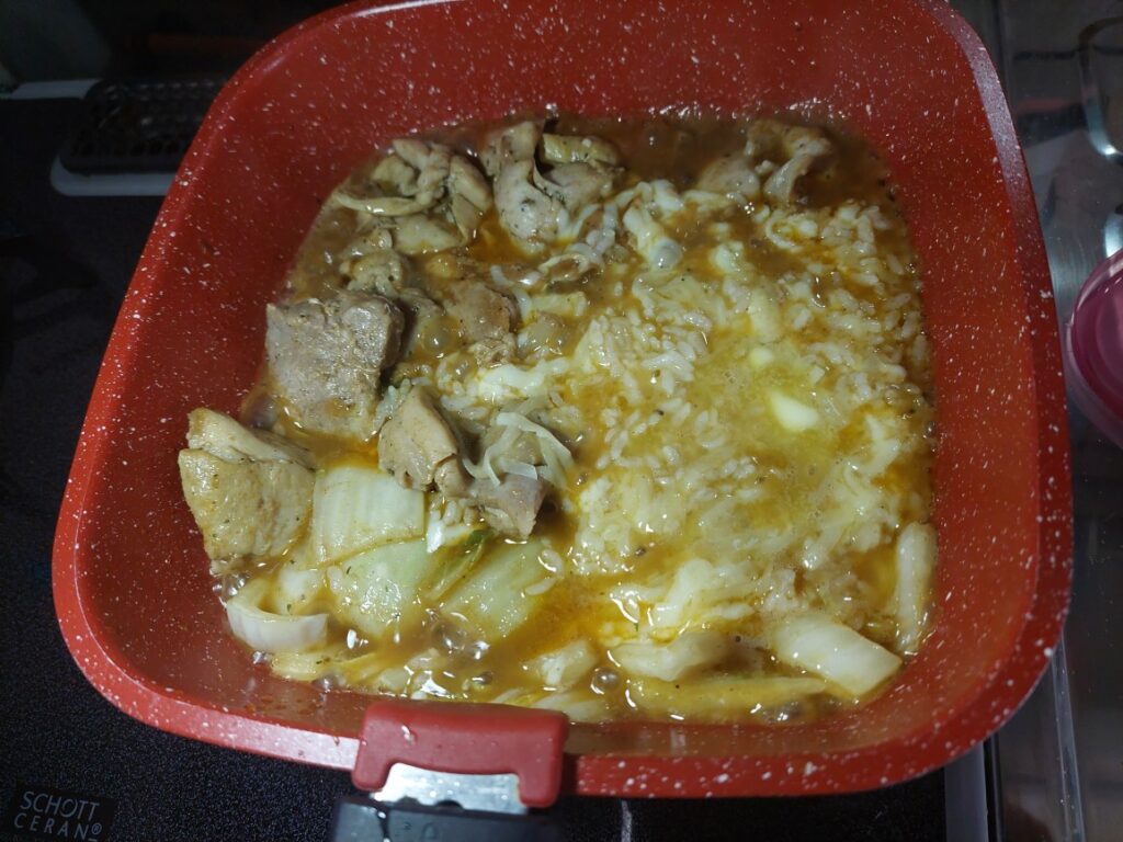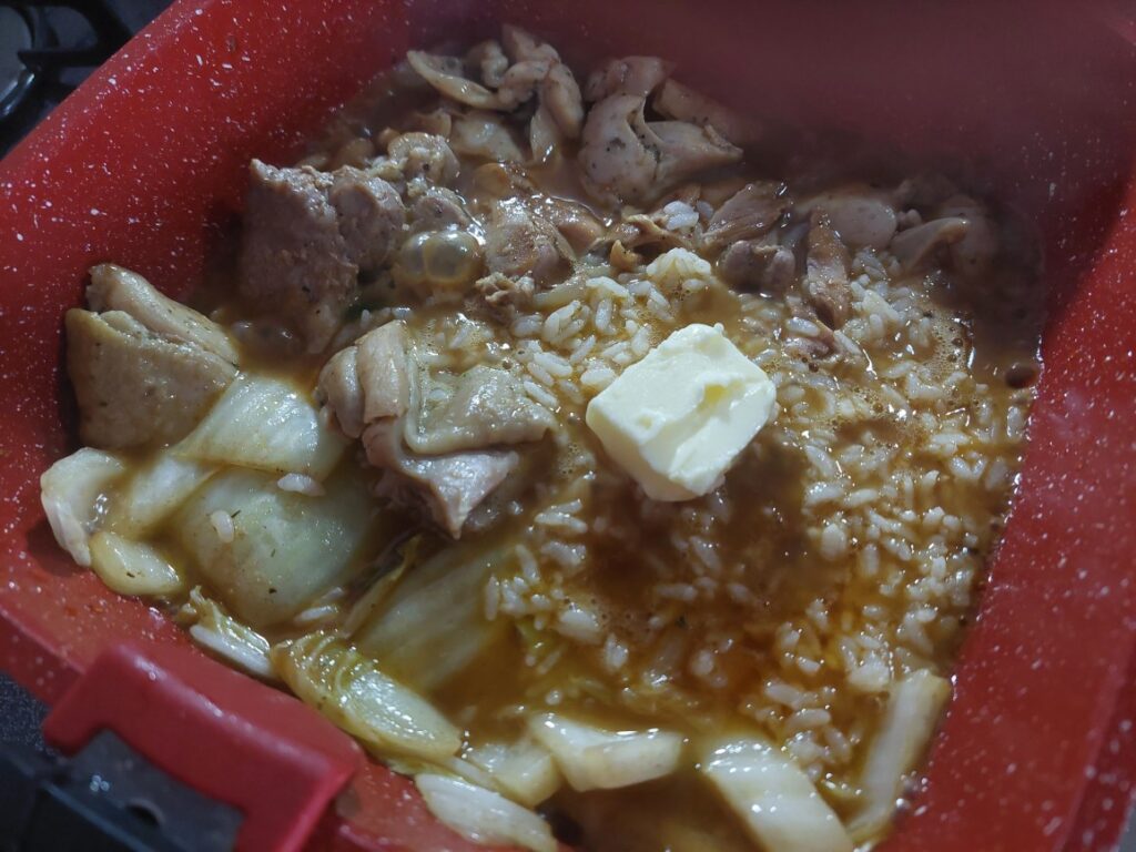ご飯が、暖められないので、デープパンにそのまま投入、バターもチーズも入れ、それ以外は何も足さず完成!スープカレーを使った、肉モリモリのカレーリゾットって感じかな?さーあ!実食です!なにー、なまら!デージー!まーさん!美味すぎる!でも肉の量が半端ないので、食べれる?かなと思ったけど、美味しいので、あっさり完食しました!