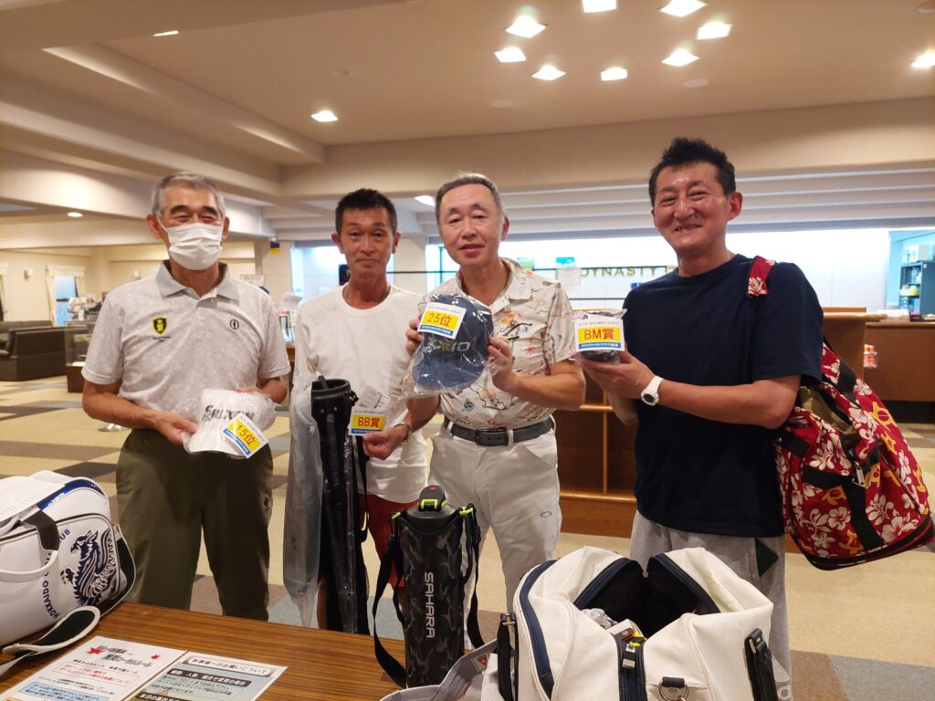昨日(14日)は、午後スタートだったので、コースの打ちっぱなしでウォーミングアップ良かったのか、ダブルぺリアでハマり?しませんでしたが・・・4人がすべて、賞品をゲット!チームテルリンこの日も絶好調でした?弟はいつもの自分みたく、逆ハマりでしたがBB賞で、弟が買おうと思ってた、ミニゴルフバックをゲットしました。