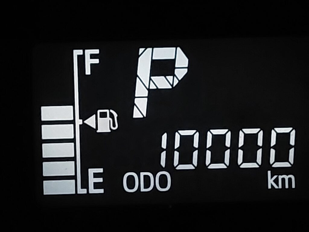 PS.遂にミライースが、9999キロマークでクルマを停めてパチリ!ですぐに10000キロ達成でパチリ!まあ、片道20キロ以上の通勤に使っていれば、9カ月でそのくらい走るんだよね・・・。