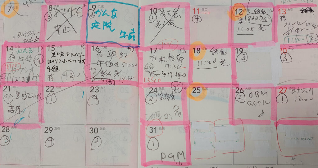 パターゴルフのツアーの総合ランキングは現在、自分は30位で40位以内か、自分はシーズン途中、第15期プロになったので、途中入会の別枠のランキングで1位で、10位以内に残れば、第3回プロパティングツアー全日本選手権のラストクオリファイに出場できます。出場資格のボーダーラインを下回ると、残り少ないツアーのどこかでポイントを取りに出場しに行かなきゃならないので、8月は弟との対決もあって、今月はラウンドに行き過ぎたので来月はゴルフをかなり控えないと・・・
