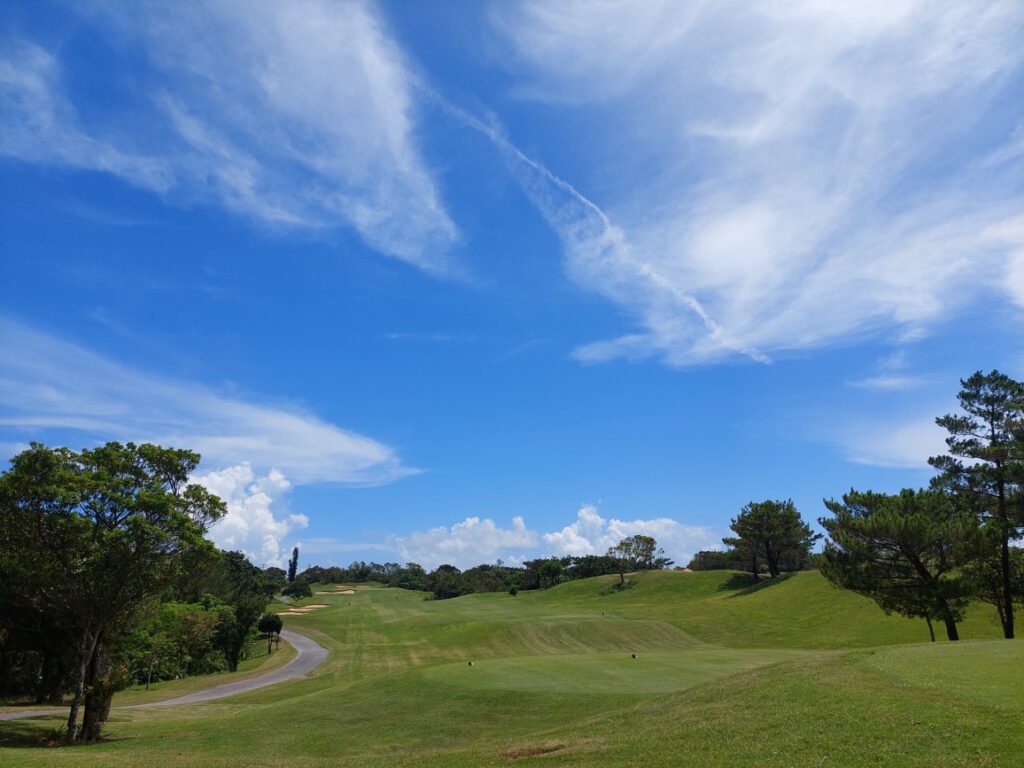コンペは、宜野座の苦手なアウトスタートでは無く、比較打ちやすい、インスタートですが・・・ドライバーは狙ったところに行ったものの、飛距離が出ていないので、二打目がバンカー越えの150ヤード。5Uで打つもバンカー、出して2パットと前半は、ことごとくパーパットを決めらせず、1ダボ、1ボギーのボギーペースで18番ロングへ二打目までは、そこそこですが、池越えの170ヤードは、飛ばない自分はキャリーでは池は越えないので可能性があるので、9番アイアンでレイアップしましたが・・・ガッツリシャンクしてしまいボギーで前半45。