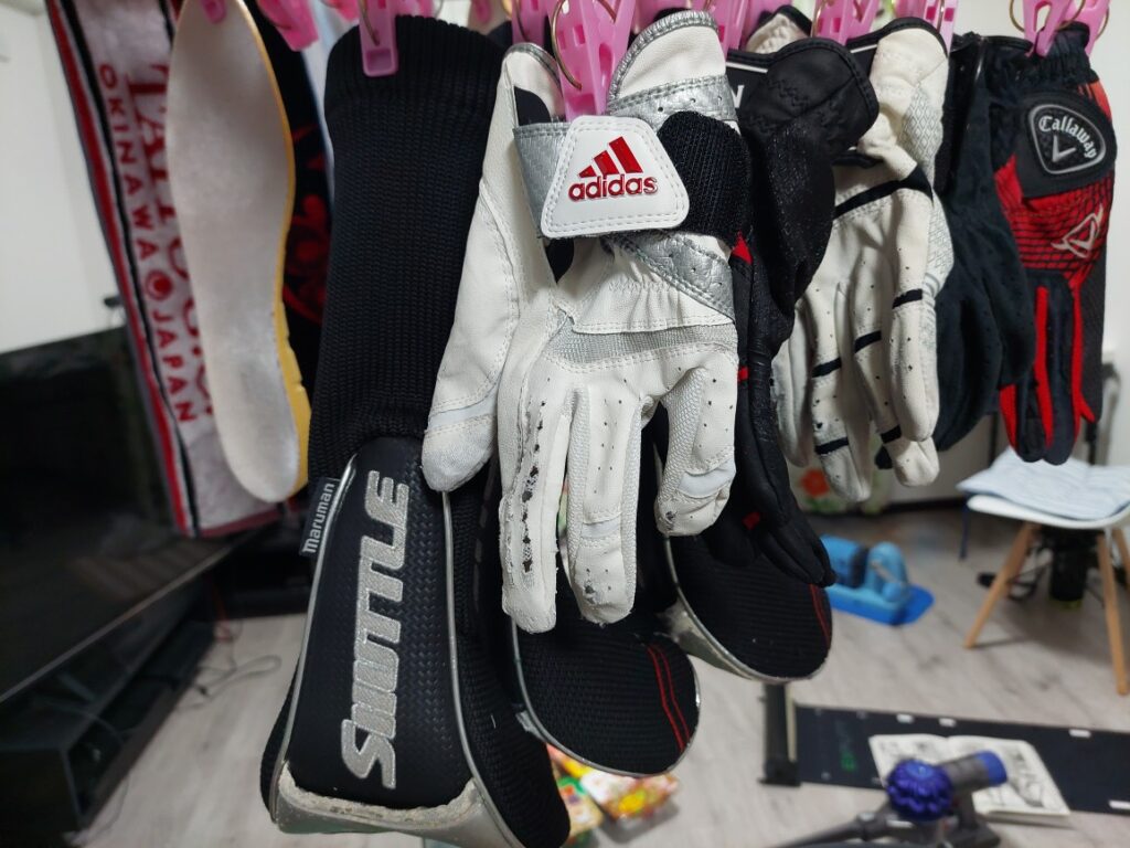 昨日は、夜勤が無いので、寝てないけど、ゴルフの梯子も、後で寝だめしようと・・・。ただでさえ、重い自分のゴルフバックが、とんでもない重さになってました。ヘッドカバーは全て、水でべちゃべちゃ、バックにかけてあった、タオルも、予備のタオル、バック自体水気を吸って・・・。なので、帰ってからが、大仕事、ウェアーだけじゃなく、帽子、タオル、ヘッドカバー、手袋を洗濯、靴も乾燥機にかけて・・・。クラブも濡れているので、しっかり、水けを取らないとネックの所から、錆びるので。グリップも14本すべて、ベチョベチョ。