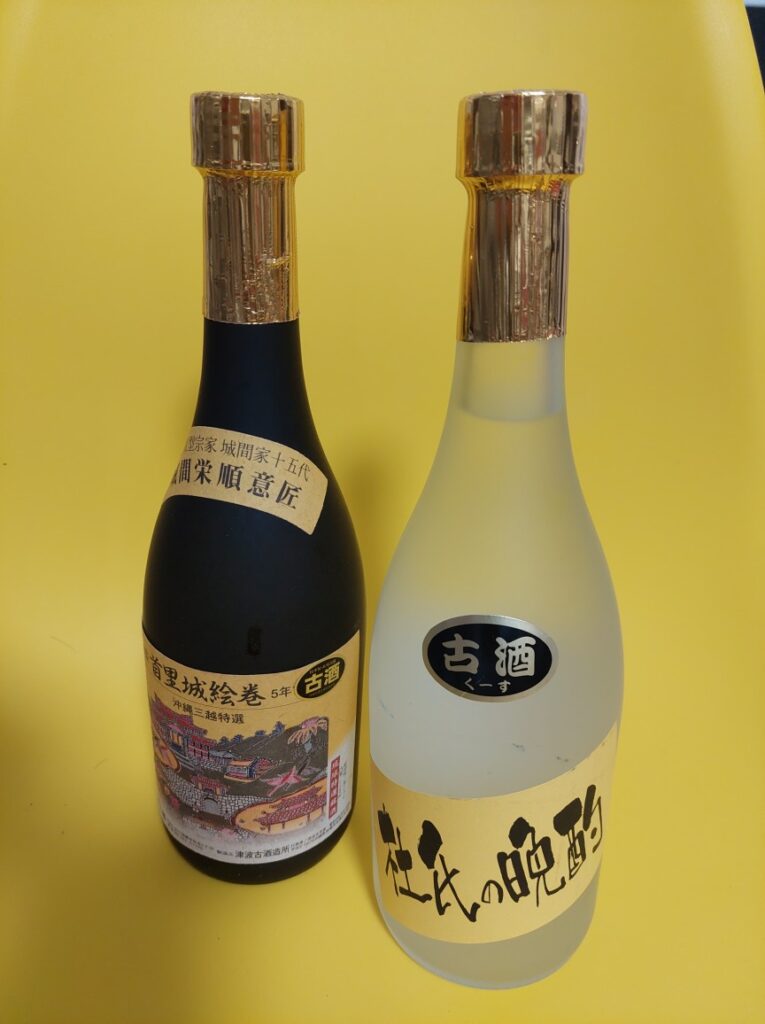 もう一人の方の伊良波さんはOISTで外国から日本に来ている教授、大学院生などのトラブルがあった場合の通訳して、対応するヘルプラインで仕事をしています。前回、一緒にラウンドした時に、美味しそうな古酒の泡盛をいただいたので、お返しに自分が来ていないポロシャツを持って行って、貰ってくれればと・・・渡すと、またまた、別の古酒の泡盛をいただいてしまいました。ありがとうございます、超ー嬉しいです、来月から全国から続々来るゴルフ友達といただきます。