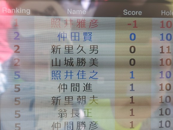 弟はフェアウェーど真ん中です、いきなり、プレー4か?と思ったら、OB手前のネットセーフ。そこから、140ヤードフォロー、飛ばないので5番UT でナイスオンで、バーディースタート。シャンクも数回出るものの、パターとアプローチでボギーでしのいで、前半はパー無しも、3バーディーで39でターン。