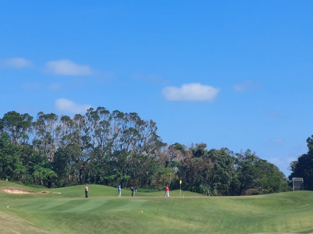 第2戦、兄弟対決宜野座カントリー、自分は腰痛の悪化で痛々中、弟に勝利して2連勝です。弟も、前半5オーバーで健闘しましたが、自分は腰痛でクラブを強く降れないのが、幸いしたのかな?あまりにも、飛ばなくて、中々パーオンしませんでした。