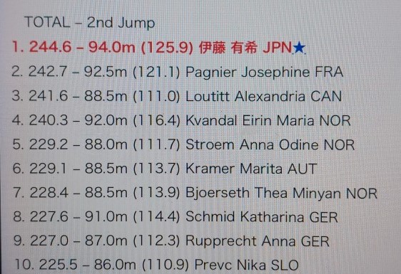 やったー!伊藤有季ちゃんが、W杯ジャンプ開幕戦のリレハンメルで優勝!通算8勝目です!