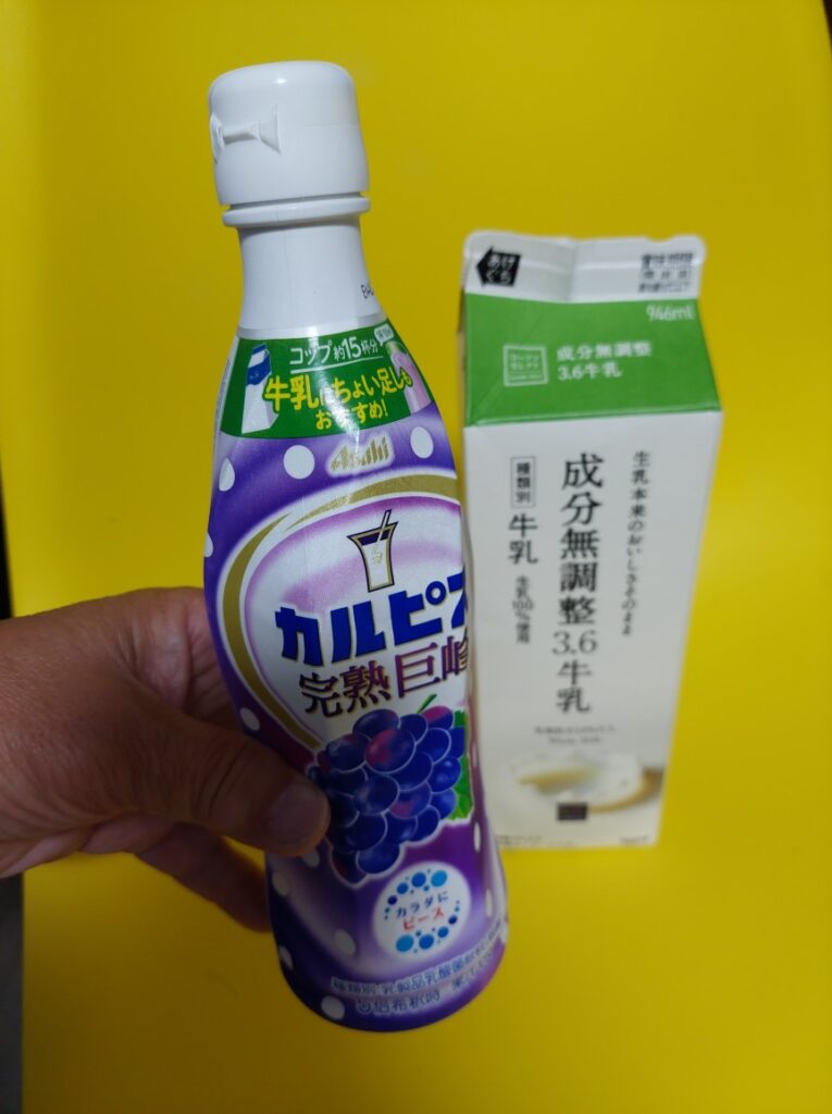 PS2.超ーーー甘党のテルリン、濃縮カルピス巨峰を買って、「牛乳にちょい足しで美味しい」と書いてあるので、ちょい足し。あれー?濃縮なのに全然甘くない、で・・・ちょっと多めに入れても、甘くない。もう一回入れて混ぜたら、超ーーー甘すぎーーー!濃縮なので、比重が重くて下に沈んでいたのねーーー!