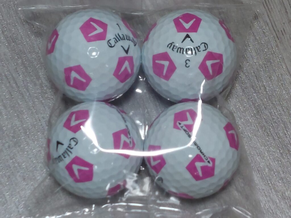 ここ数年は、貧乏になってるので、ボールの種類もバラバラ、沖縄に来る前からキャロウェイのクロムソフトの限定ボールのピンクを沖縄に来てからも、しばらく使ってました。色々なゴルフ場に打ち込んで、ボール拾いのバイトで自分で拾ったことも。