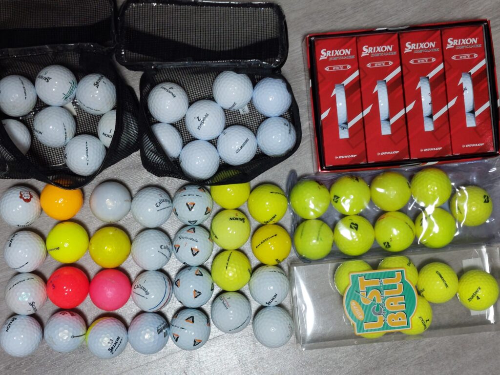 チカリンの東邦商会で買ったロストボール、もらったボール、ゴルフ場で買ったロストボールです。多分、ゴルフ場で買ったものも、宜野座、ベルビーチなら東邦商会かな?今はパターのプロになって、大会の指定ボールは、スリクソンのトライスター。自分はパワーが無いので、非常に柔らかいボールが好きです、パターのタッチも、アプローチも打感も合うので。