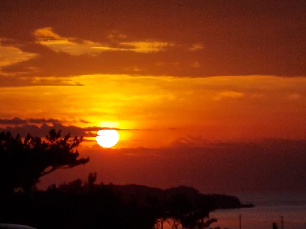 真っ暗い時間から出勤、仕事場に着くと見事な日の出が見られました!ラッキー!