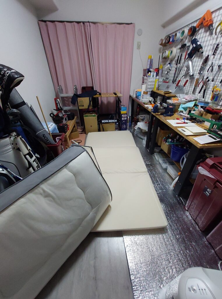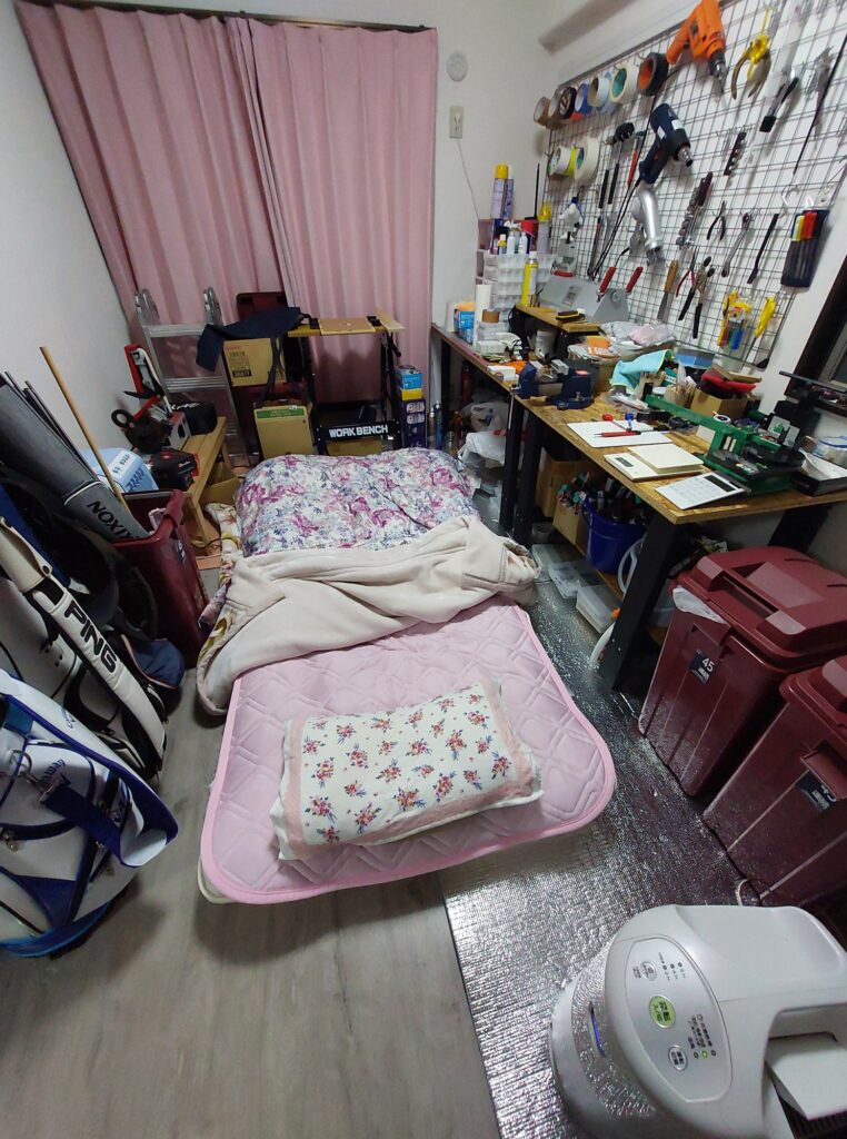 PS.11月の弟に続き12月も、テルリン工房の工房ルームも、大井田君の寝室になりました。普通は1人で3LDKなら、楽勝なような気がしますが・・・工房でかなりのスペースを占めているのですが、布団を引くと一杯いっぱいです。