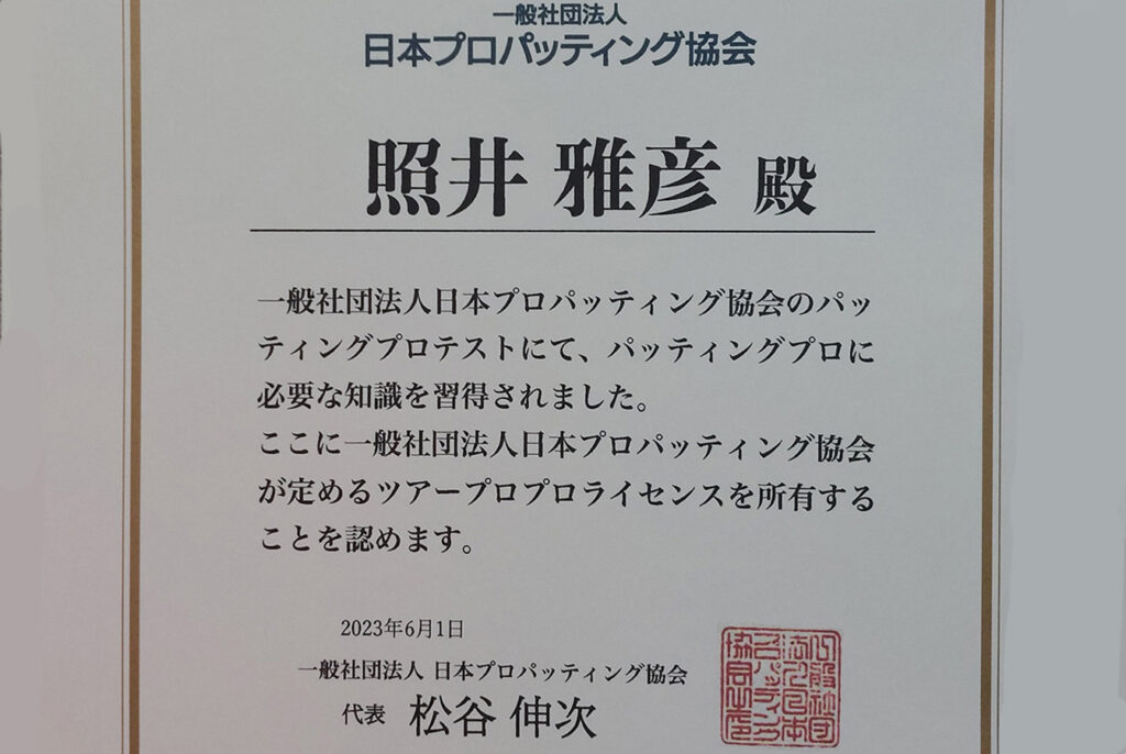 ゴルフ友達の角田さんに続いてパタープロになりました。北海道大会に自分が沖縄から行った時に、角田さんが初優勝、弥勒ちゃんも初優勝。角田さんは、今季3勝です。自分も来年は優勝して、最終戦でも賞金を稼ぎたい。