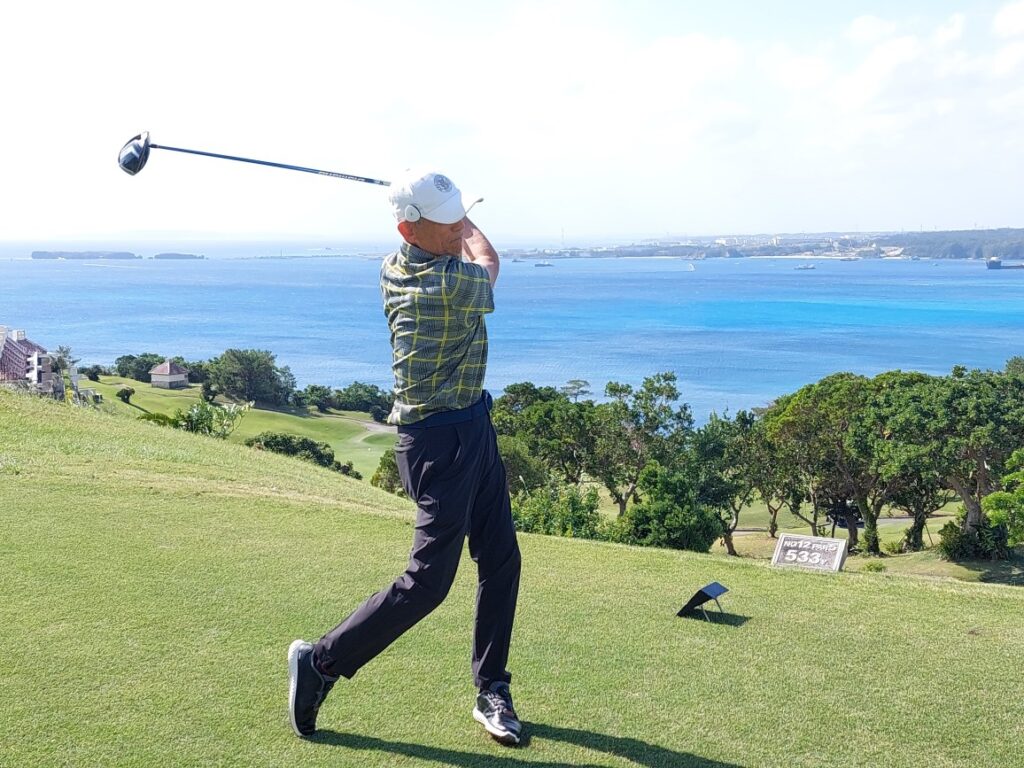 樋口さんと、沖縄で一緒にゴルフをやりましょう!2018年に沖縄に一緒に行く予定が、自分が病に倒れ、樋口さん一人で、沖縄に・・・。今は自分が沖縄に住んでいるので、北海道に帰るたびに、「今度こそ、沖縄で自分と一緒にゴルフやりましょう!」と、5年前の約束をやっと果たせました!。沖縄で3ラウンド、最終日は沖縄のゴルフ場で一番難しと言われている瀬嵩カントリークラブ、初ラウンドで83はお見事です!パチパチ!