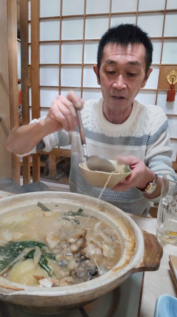 自分たちが、冬に万盛寿司でリクエストする、定番のアンコウ鍋を食べながら、色々食べました。美味しい日本酒を一杯、飲みました。