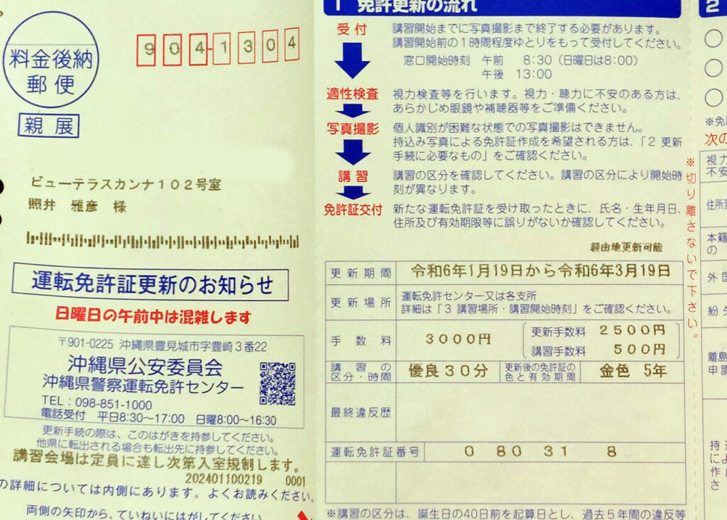 免許の更新が来ました、やっとゴールド免許にになったのですが・・・5年?あっと言う間です!