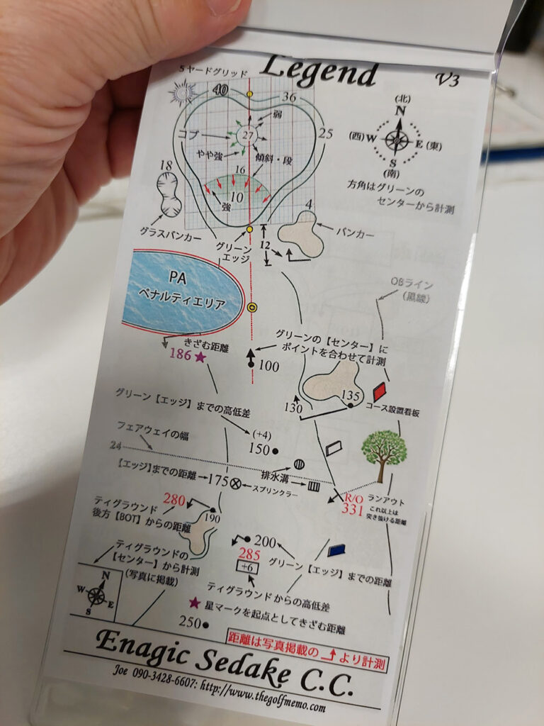 今度、ラウンドする時には、グリーンの形状や芝目傾きも確認しながら、距離も、スタイミーな所が多く、レーザー距離計も使えないところも多く、見えないフェアウェーバンカーの距離もわかるので重宝しそうです、今度はいつ回ろうかな?どうせな、将来プロを目指してる、中村さんのジュニアにでも、お願いして一緒にまわろうかな?