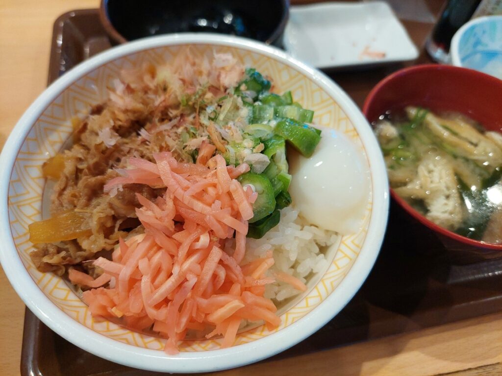 すき屋の朝定食「牛まぜのっけ朝定食」ごはん大盛りで430円、ワンコインでお釣りが来ます。残念ながら、宜野座村にはファーストフード?全国チェーンは皆無で、昨日も、お腹は空いてませんが、薬を飲むために?でも、すっかり大盛りで食べる癖が治りません!(前に働いていた、ゴルフ場で同僚が次々と4人ぐらい辞めて、その分の仕事も一人?でやっていて、激務で食べても食べても痩せて行くので、ドカ食いの癖が・・・)ヤバイ!ヤバイ!
