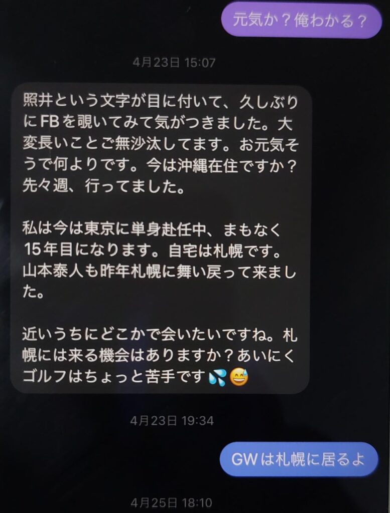 今回の北海道はゴルフ以外に、大昔の友達や同僚に、自分が生きてる間に会うつもりです。
