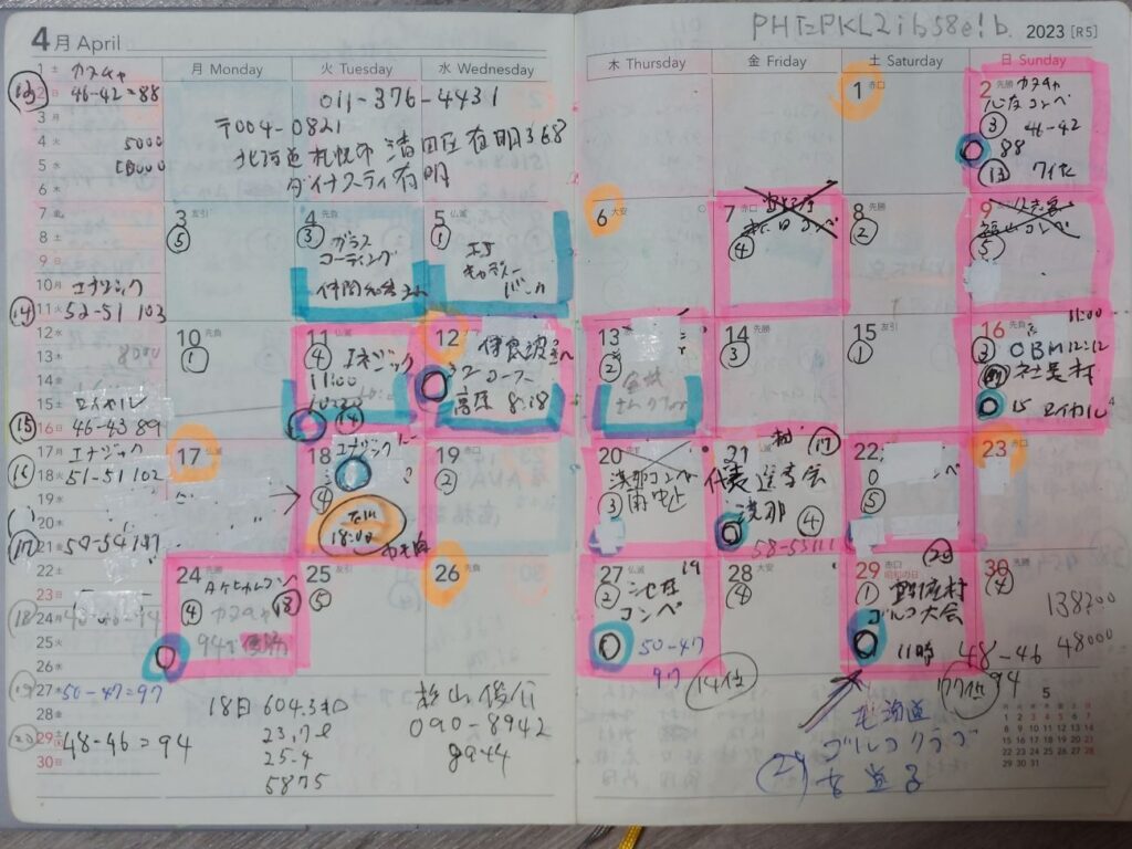 Facebook去年の今日を、見るとスケジュール帳に、色々な予定が一杯!流石に今年は、金欠病で大好きなゴルフのラウンドは減らしていますが・・・スケジュールのメモ書きも、ほぼ一緒です、ゴルフバックを自宅じゃなくゴルフ場に直接送る、ところなど・・・。