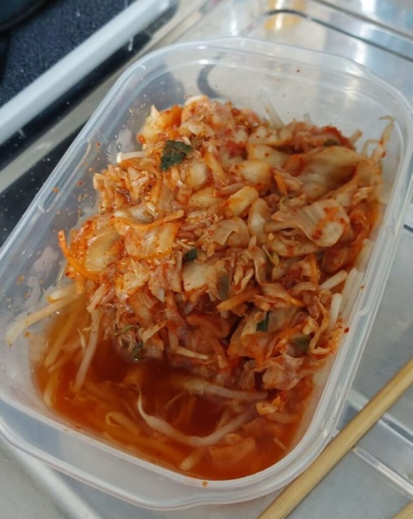 PS.沖縄で自分が一押しのキムチ「まーさんキムチ」を使って、キムチ焼きそばを作りました。これも、テルリン時短?簡単美味しいレシピです。まず、生のもやしをタッパーウェアに入れ、その上に「まーさんキムチ」をのせて、冷蔵庫で半日寝かして、キムチがしみ込んだものを、炒めて、焼きそばを投入、後は生ニンニクと塩コショウを少々で美味しい「キムチ焼きそば」が完成!