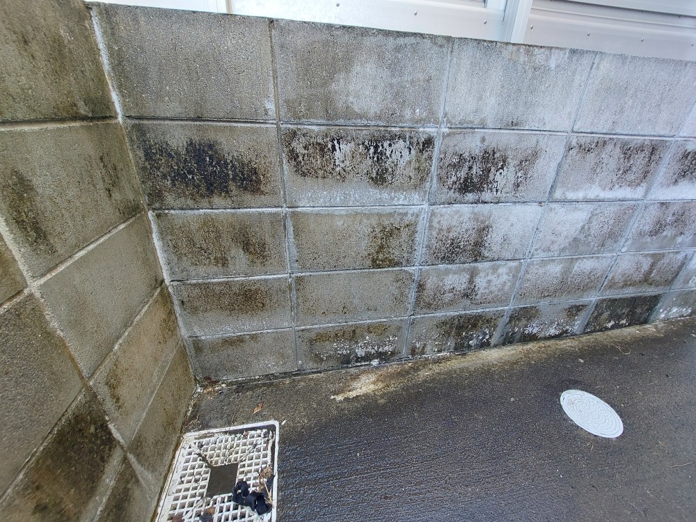 ベランダは床面積は20畳以上ありますし、ブロック塀、家の外壁などを入れれば40畳以上、ベランダに直射日光があたる前の日陰時間の内に3時間ぐらいかけてやっと終わらせました。長雨が長かったせいで、ここ4年で、一番、ブロック塀の壁のブロック、ベランダの床が黒くなってました。