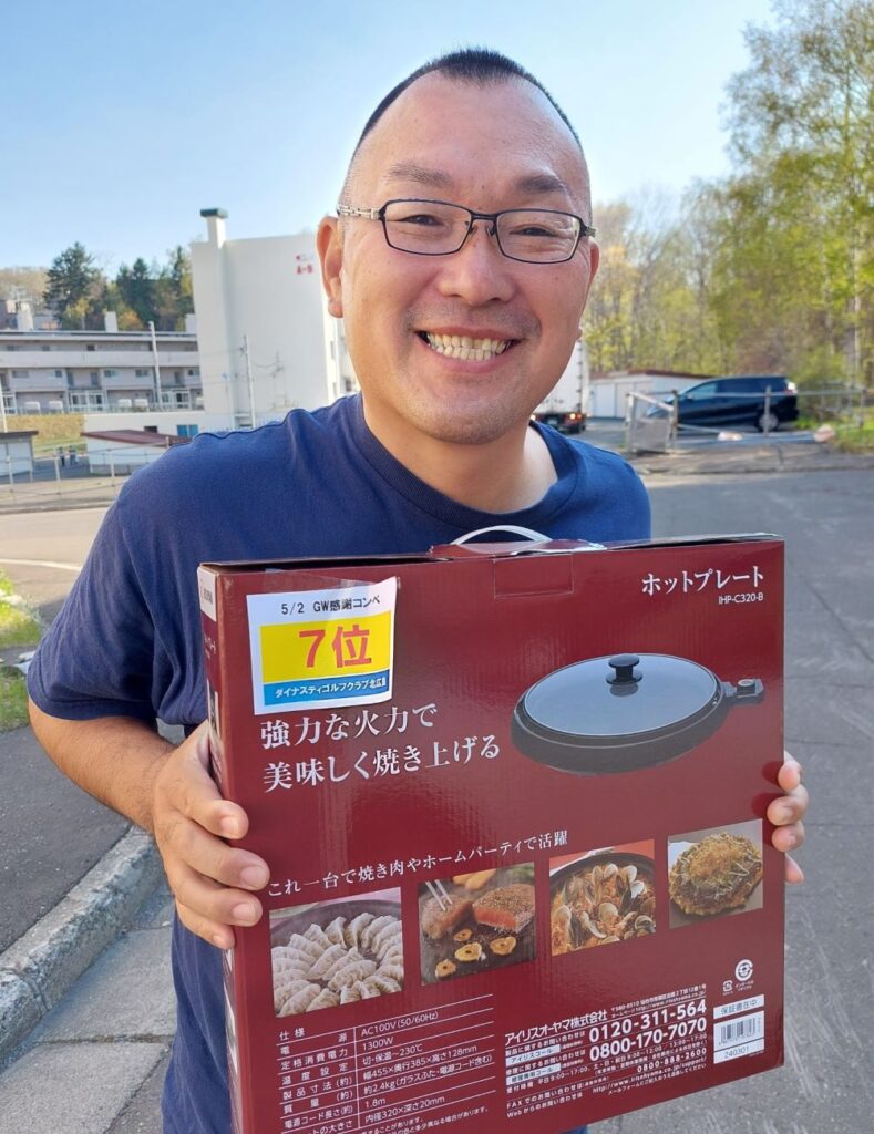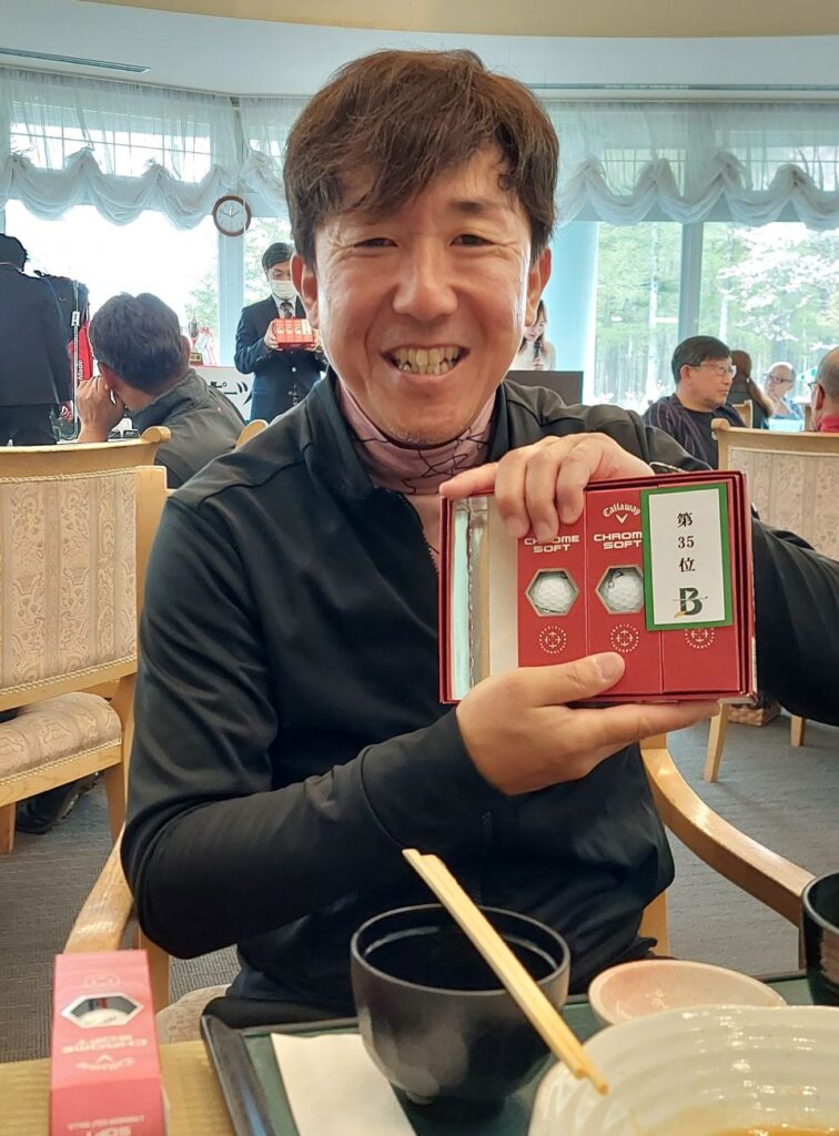 12日、ダイナスティー北広島のコンペに参加、3組の枠を取りました。このコースは、自分が北海道写真記者親睦ゴルフコンペの時にも、よく使ってたコースで、ラウンド後はコンペのお弁当では無くて、ジンギスカンが美味しいので頼んでました。なので、トーマスに初?ジンギスカンを食べて、サッポロビールを飲んでもらいます。