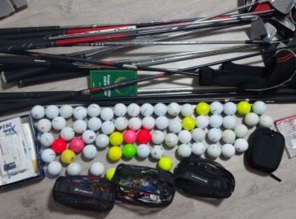 PS.連日、雨でキャディーバックも重たくなって、ヘッドカバーも重たくなってるので、当日はカートの後ろで乾かしました。それでも、自分のキャディーバックは重い。入っているモノを全部出して見ると、ボールが一杯、これは重いわー!ワンオンチャレンジで、毎回5等賞しか引けず、ボール3個、コンペで参加賞のボールなど・・・プラス、ゴルフ場で買ったロストボール、スリクソンZスターか?タイトリストのV1などなどで46個?。