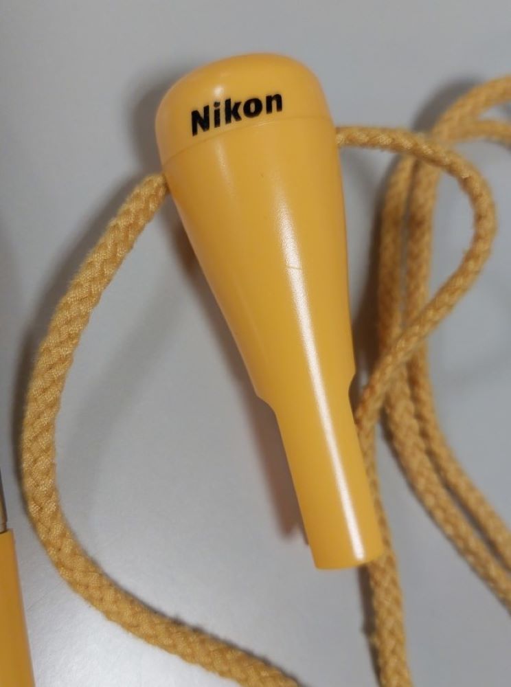 後、懐かしいものが出てきました、首からぶら下げる、ニコンの販促グッツの黄色いボールペン。色々な大会会場で貰ってたけど、首からカメラもぶら下げてるし、ボールペン部分が落ちていつも、ストラップだけになってました。この販促グッツも企業の景気が悪くなってなのか、途中から配られなくなりました。ちなみに、インクの部分を開けると、パーカー?ブランド品だったの?