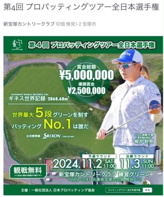 PS.10月のツアー最終戦で仙台に行くつもりでしたが諦めました、去年のように、今年は全日本パッティング選手権の神戸にも参加できません。最終戦の仙台でポイントを稼ぐか?優勝して?全日本パッティング選手権の出場資格を何とか得ようと思っていましたが・・・。