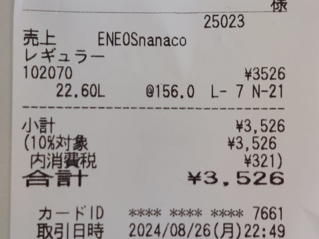 燃費は?503.9キロ走って22.6リッターなので、約22.2キロちょっと悪いな・・・大体いつもは、リッター24キロは走っていたのに・・・やはり、軽自動車でCVTなので、高速を使用する機会が多いと燃費が悪いみたいです。反対に前に乗ってたステーションワゴン7速ATで高速を走ると一番燃費が良かったです。