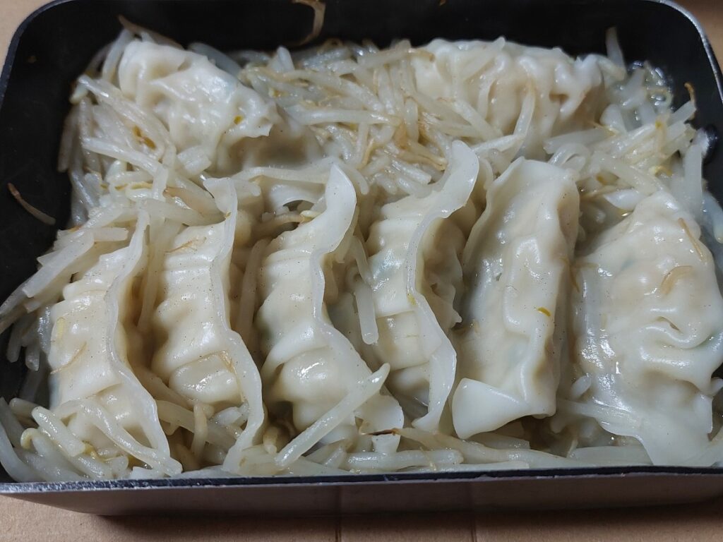 お腹が減ってるので、最近気に入ってる、「餃子の王将、ニンニクマシマシ餃子」を焼いて?で野菜も?と思って、冷凍していた、もやしをそのまま大量に餃子の上に乗せると多くの水分が出て、水餃子が完成!水分が出るのでしっかり水餃子なりました。これは、アリだ(テルリン時短レシピに・・・)にと思って、美味しくて、ビールも飲んで満腹で朝から就寝。