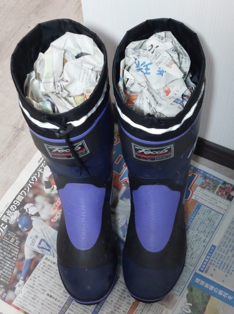 長靴の中も、大雨であまりにも、ぐちゃぐちゃなので、いきなり乾燥機じゃなくて、新聞紙を丸めて水分を取ってから除菌消臭スプレーをして乾燥機で乾かしてる間に、料理を・・・。朝は水餃子だったので、今度は普通に焼き餃子とキムチをつまみに、ビール、最高に美味(うま)し!