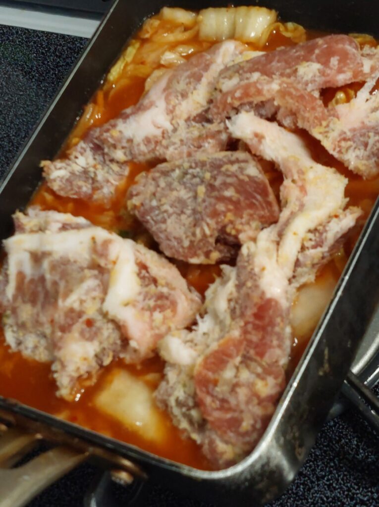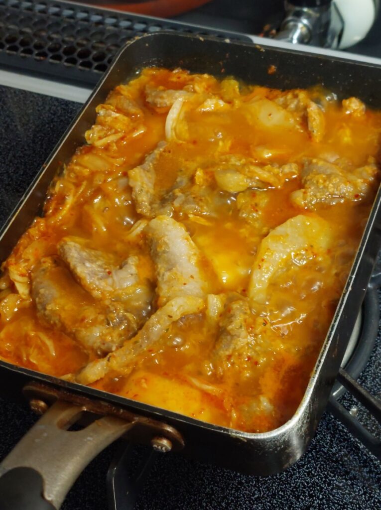 ビールが進み・・・つまみの、餃子が無くなって、もう一品?キムチがあるので、ブタ肉と炒めれば、豚キムが出来るじゃない?で・・・早速?でも、汁多めなので・・・豚キムチってより、キムチ鍋風でこれも最高に美味い!今度は、ちびフライパンに残った出汁?汁が・・・これ?勿体無いな???と今度は餅を入れて、焼いて・・・これもまた超ー美味しくて、俺って?時短料理天才?今度、弟が来たら、酒のアテに最高なので作ってあげよう!
