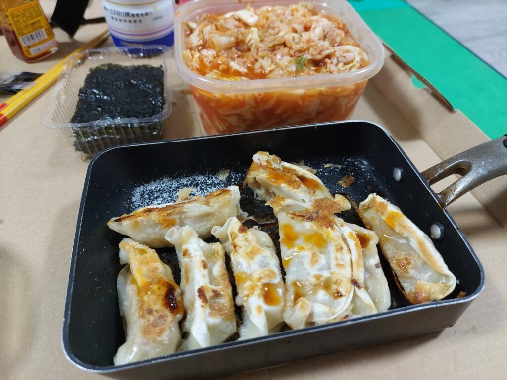 長靴の中も、大雨であまりにも、ぐちゃぐちゃなので、いきなり乾燥機じゃなくて、新聞紙を丸めて水分を取ってから除菌消臭スプレーをして乾燥機で乾かしてる間に、料理を・・・。朝は水餃子だったので、今度は普通に焼き餃子とキムチをつまみに、ビール、最高に美味(うま)し!