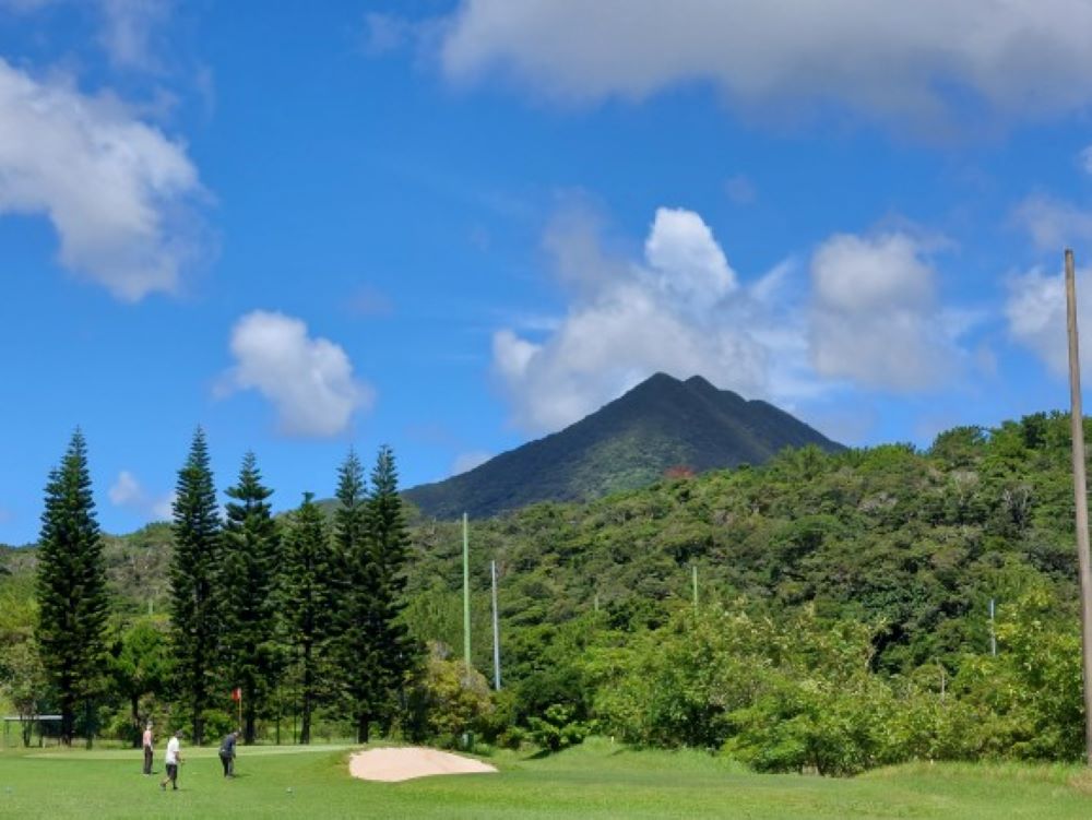 今日は、久志岳(写真下)はくっきり見えるので、10日のボール拾いの時とは違って、雨は大丈夫そうで、問題なく、終始好天の中ラウンド出来ました。ただ、8日の福山コンペと同じく、風向きがコロコロ変わるので、今回は横着しないで、風向きが変わったら、クラブを変える!肝に銘じてました。