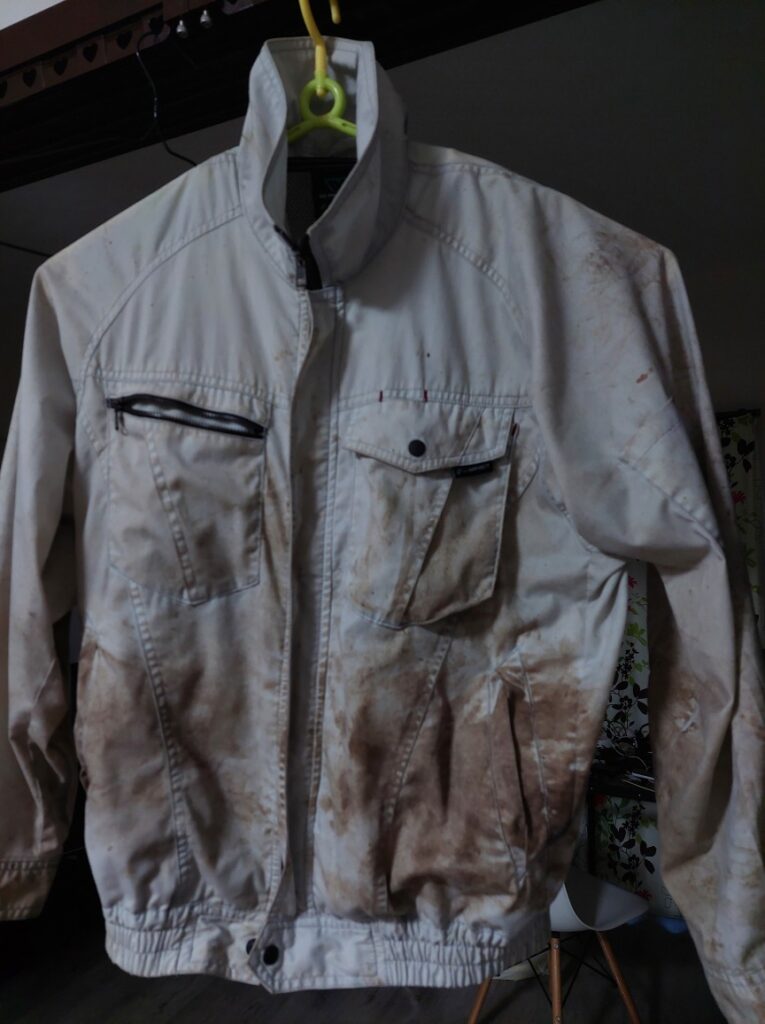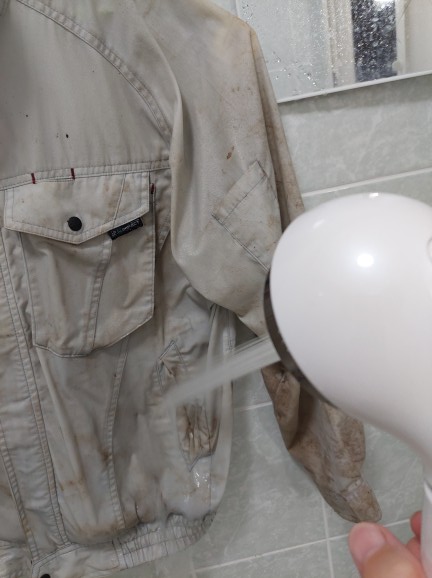 前回より、雨は激しくありませんでしが、斜面に張り付いての作業?トレーニング?だったので、空調服もズボンも、靴も、泥だらけ、家の前の水道のホースを使って、長靴とズボンの裾の泥を落として、空調服のバッテリーとファンを外して、風呂場で洗いました。ナノバブルシャワーにヘッドを変えたので、泥は見る見る落ちます。それを洗濯機に放り込んで、洗い終わると、また、白いインナーシャツが泥で部分的に染まってしまいました。入念に風呂場で泥を落としても、やっぱり、分けて洗わなきゃダメか?