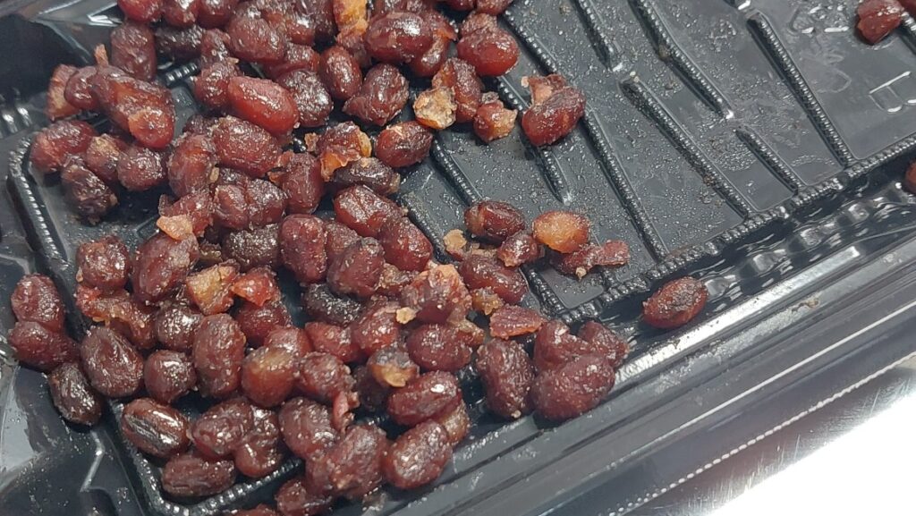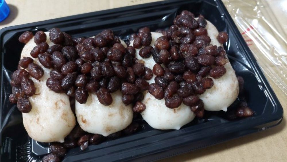 少し甘い餅に、少し甘い小豆が乗っていて、食べるペース配分が悪いのか?大量に小豆が残ってしまいました。これだけで、食べても良いのですが・・・。沖縄のぜんざいで、北海道の赤飯もどきをテルリンレシピで作ってるので・・・。豆は小豆なので小さいけど、これを使って、もち米で炊けば、北海道バージョンの赤飯に近いものが作れるんじゃない???