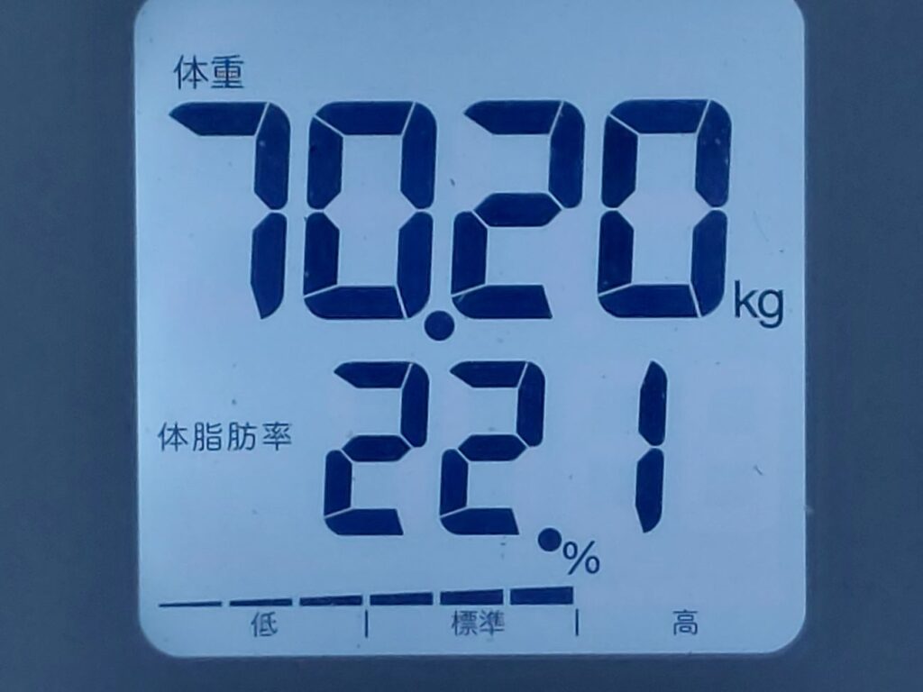 いつも、夜勤明けの帰りに、金武のマックスバリューに食材を買いに寄りますが・・・肉以外によく買う、カット野菜とエリンギ、もやし、まーさんキムチのマシマシに使う白菜などが、毎回、朝一番だと売り切れていて、買いたい野菜がありません!食生活が偏ったのか?ご飯を1膳じゃなく、ご飯2膳を食べる感じで、体重が増加して、遂にまた70キロ台に戻ってしまいました。