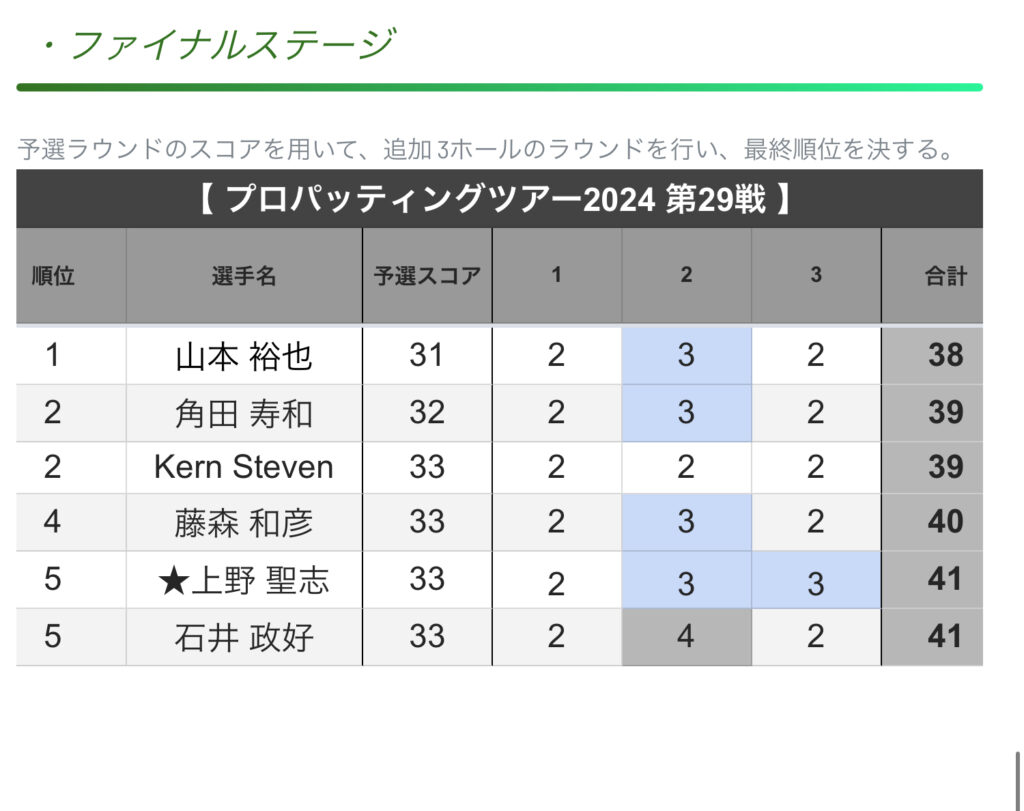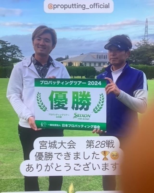 PS.上野プロも、北海道のゴルフ友達で、先輩プロの角田さんも、最終戦の宮城大会に出場していて、ラスト4戦の28戦目で予選通過し、ファイナルステージ上野聖志プロが優勝!パチパチ!29戦目で、角田プロも予選2位通過しましたが、ファイナルでも1打差を挽回できず、惜しくもと2位でしたが・・・優勝争いまで、流石です!