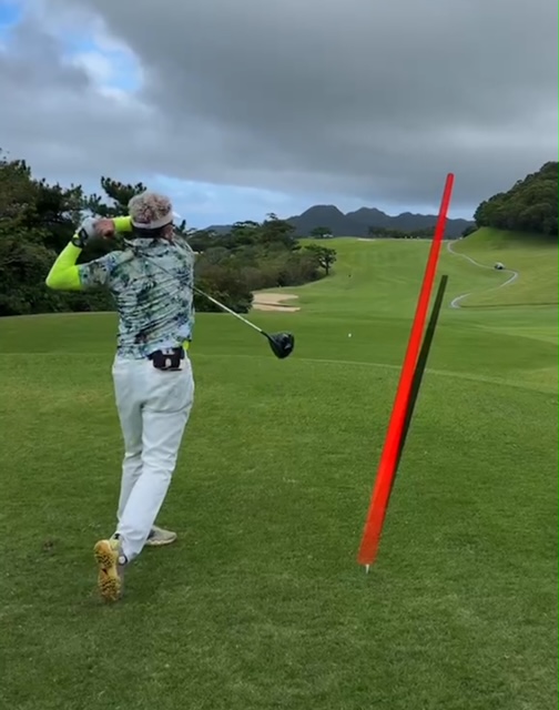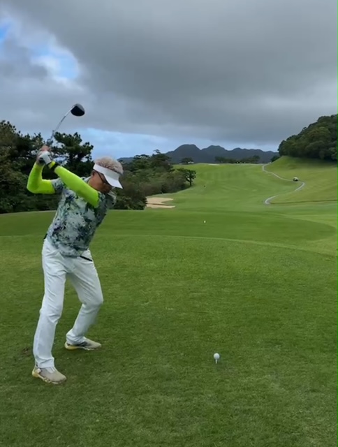 5番ロング、あまりにも、前が詰まって待って待ってなので、時間があったので同伴の国場さんが、iPhoneの「Smooth Swing」と言うアプリで自分のショットを撮影してくれました。当然、強烈な向かい風なんで自分が「ドローボールを打つね!見てて・・・」と宣言して、普段は超ーノミの心臓の自分が、珍しく、撮影時にプレッシャーにも負けずナイスショット!強烈なアゲインスト中、綺麗なドローボールが打てました。