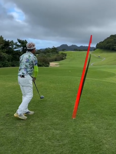 すぐに、画像データーをLineで送ってもらい、今日(23日)はベルビーチに来て良かったと・・・撮影の動画を見て満足満足!結局、このホールもパーオンのバーディー逃がしのパー。ここまで3オーバー悪くないか・・・。90は切れるなと・・・。6番、途中から急激な打ち下ろしのミドル。真ん中の松があって、その左狙い。フォロー風なんで、今度はフェードで軽くドライバーを打ったのが思ったより右に曲がって、松の横・・・・打ち下ろしの150ヤードも木の先端の枝がピンを狙うと当たりそう?