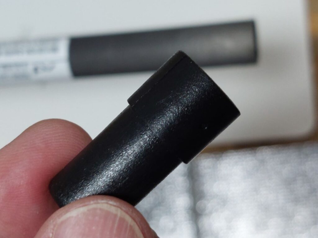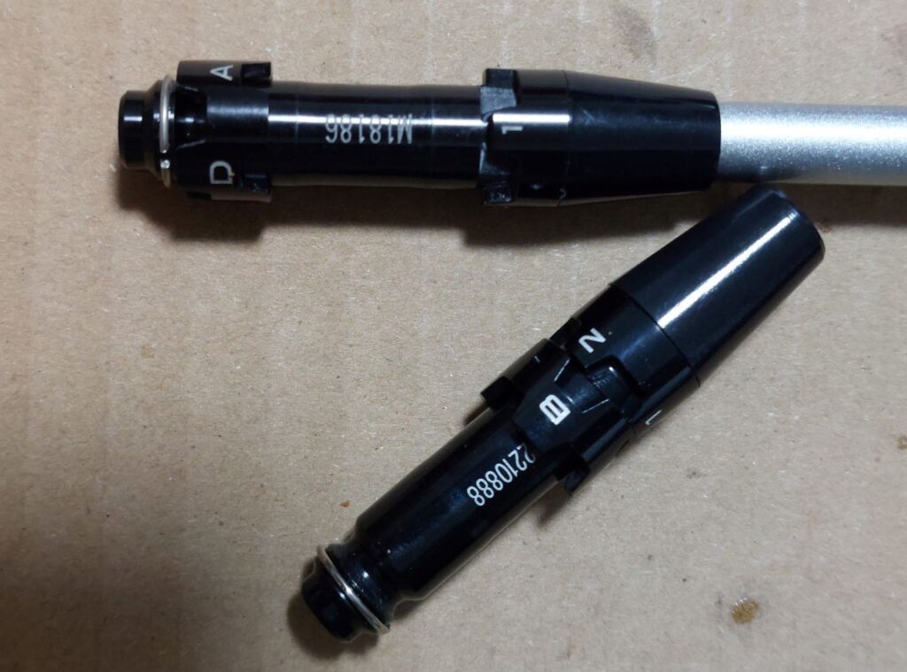 で・・・福島さんが帰った後、すぐに作業開始、シャフトにタイトリストのスリーブを装着して、シャフトを延長して、仮組してバランスを調整して、グリップ交換して特急仕上げを終了。時間にして小一時間くらい・・・Lineで出来ましたよと連絡すると、また名護からシャフトを取りに来てくれました。